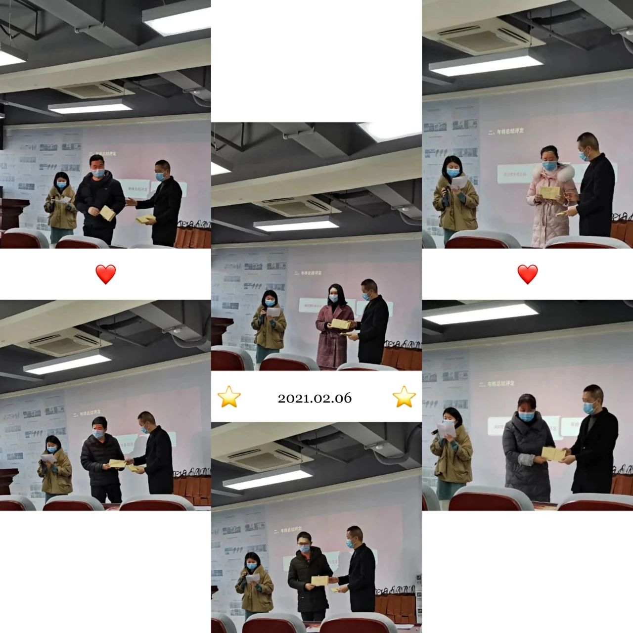 第二个环节龚经理做年终总结,回顾了2020年集团取得的成绩,也肯定了各部门同事为集团的发展所做出的努力。展望2021年集团的改革方向,相信在新的管理机制下,集团发展一定更上一层楼!接下来是最最最激动人心的环节,给各部门发放年终奖啦!