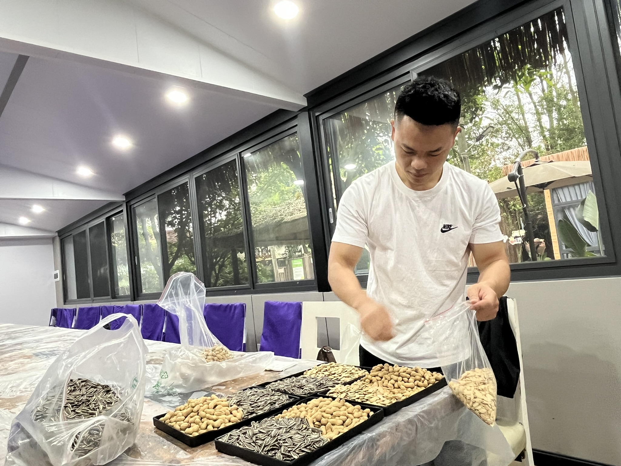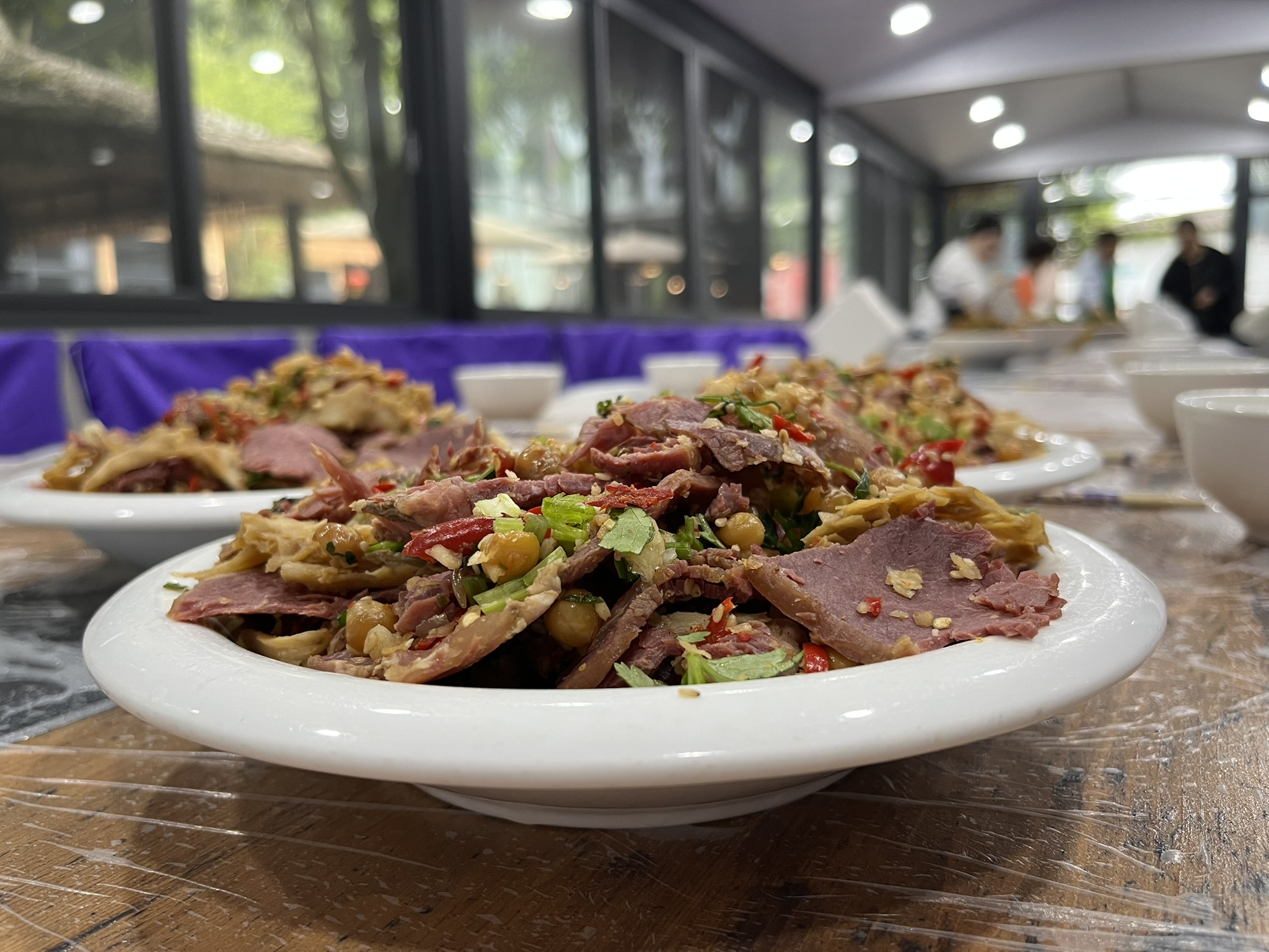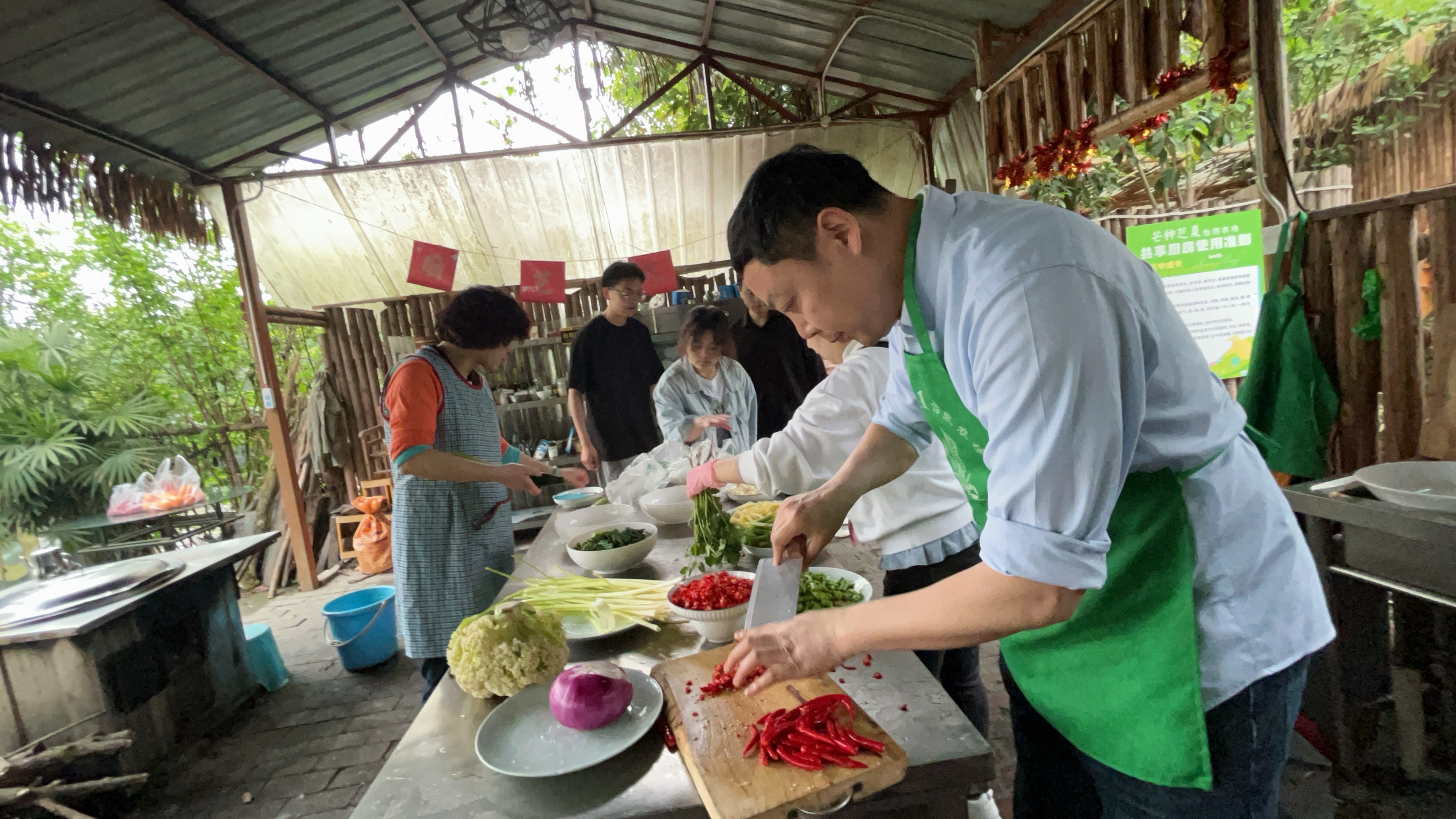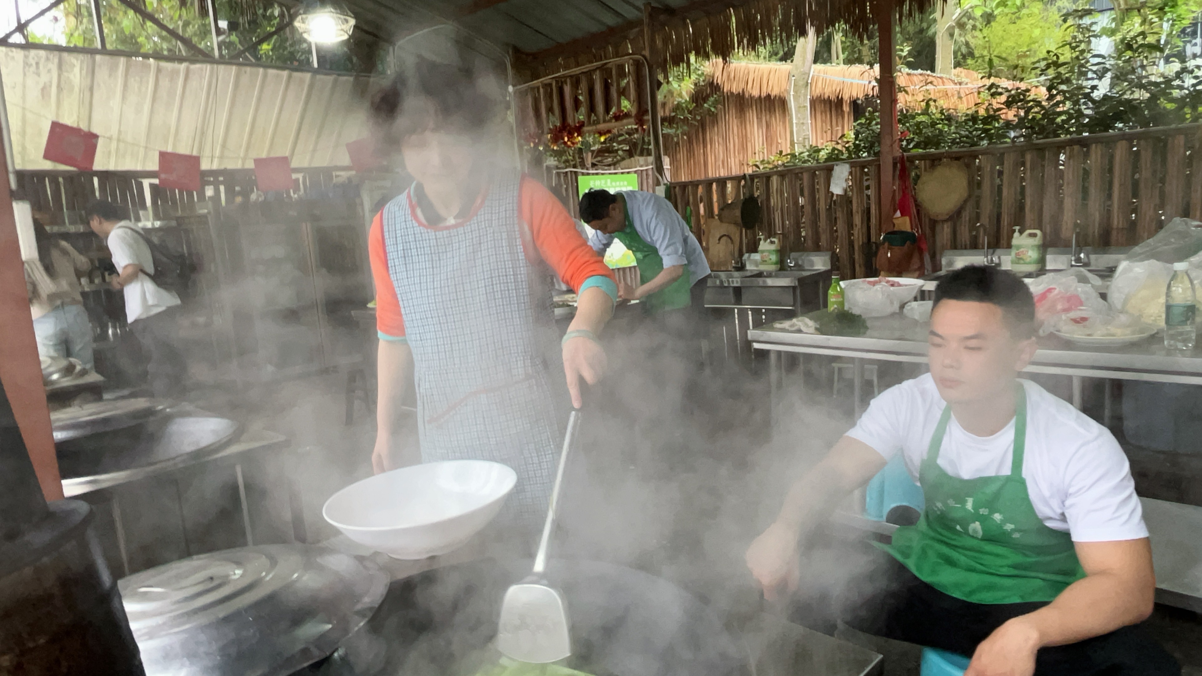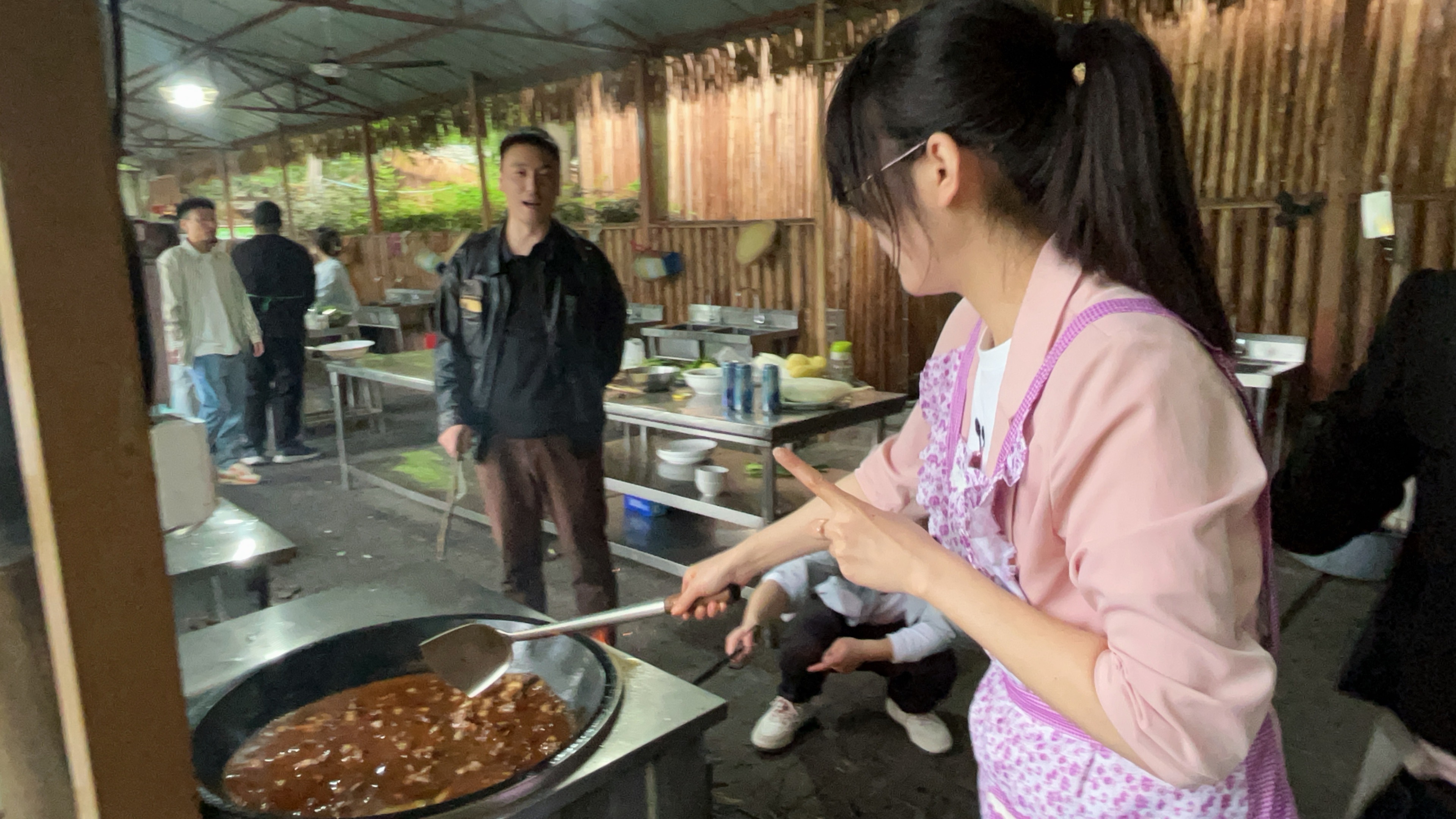 从菜品采购、搬运、摆盘到场地布置,还有一群小伙伴在身后默默支持。